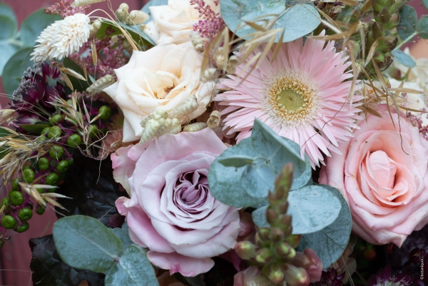 Zarte und liebliche Rosa-Pinktöne werden zu einem Blumenstrauss gebunden.